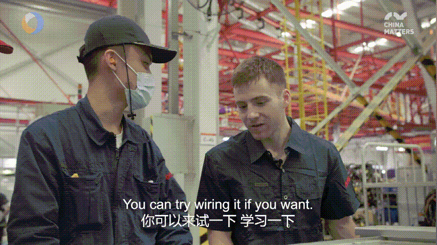 視頻中,外籍主持人Jack穿上了中國重汽的工裝,深入生產車間參觀交流,體驗中國重汽現代化、智能化的生產線。