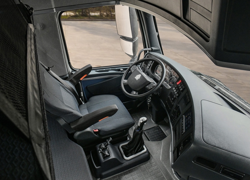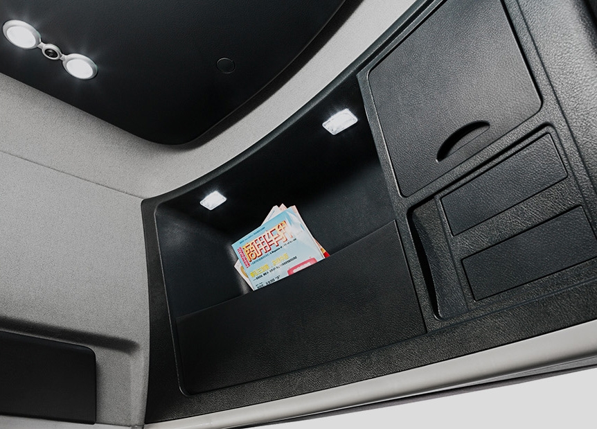 駕駛室內(nèi)部空間大,可供活動(dòng)范圍大,通過性好;且有多個(gè)儲(chǔ)藏空間。
